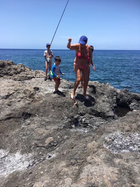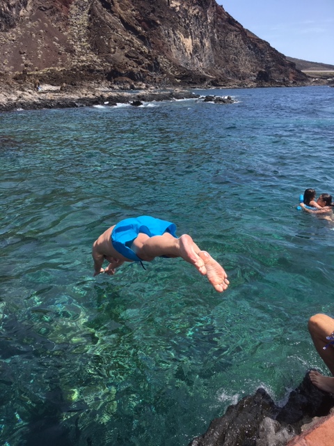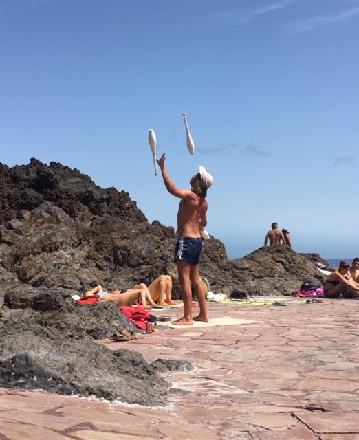 Det finns en man här som man ibland träffar på i La Maceta. Han kastar sig i det vilda havet och snorklar sig ut till klipporna utanför dom iordninggjorda bassängerna. Där vet han var bläckfiskarna har sina krypin och det kan hända att han kommer upp med händerna fulla av dessa. Han håller dom i ett fast grepp medan deras alla armar kravlar sig upp på hans. Sen slår han ut bläcket och tar med dom. Kanske han säljer dom? Eller själv lägger dom på grillen?