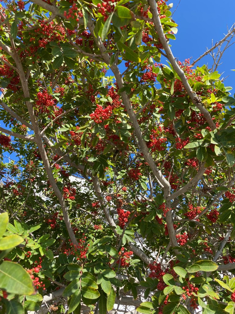 När allt det var avklarat så gick vi ner i vår barranco, vår ravin, och plockade loss ett gäng med kaktusfikon. När vi köpte lite mark i anslutning till vår tomt så fick vi flera kaktusar på köpet som varje år har en massa gulröda frukter. Jag har försökt ta hand om dom, men alla små hullingar som finns på dom är så svåra att undvika.