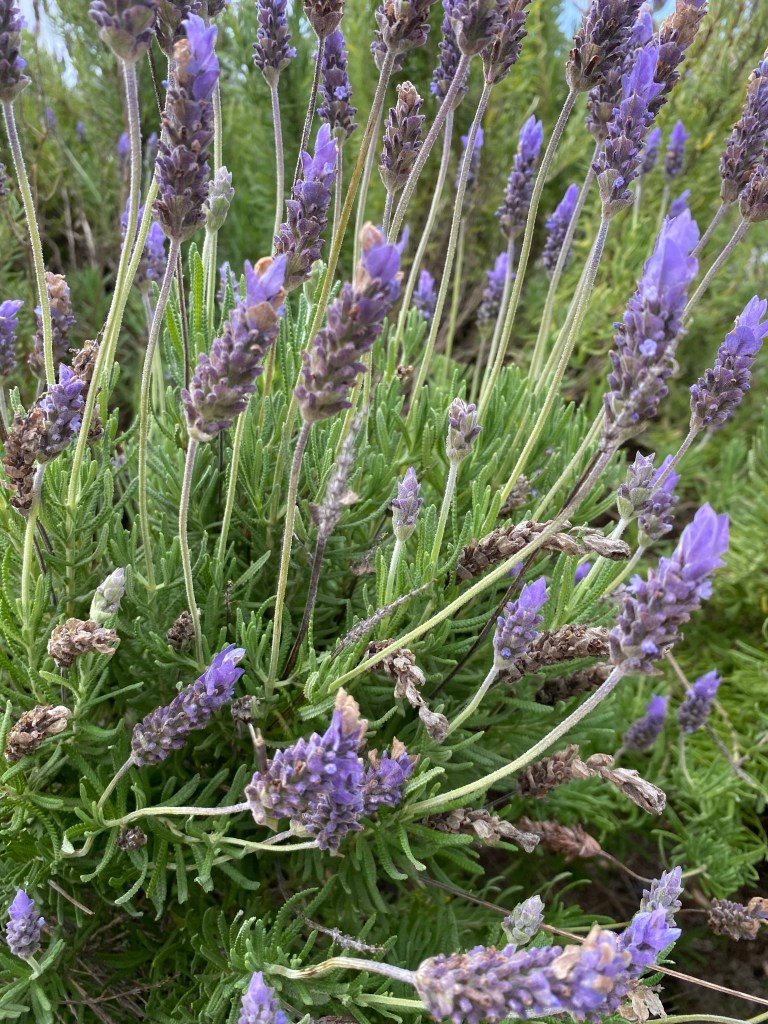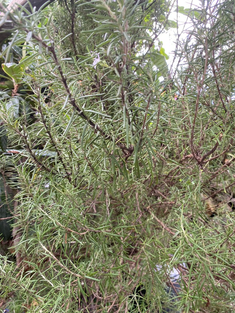 Vi plockade av dom med hjälp av en liten kartongbit för att slippa få dom små stickorna i huden. Sen la vi dom på en bädd av torkade pinjebarr och liksom borstade dom med en knippe torkad timjan. Bara förde dom fram och tillbaka. Sen var dom lena som barnrumpor!