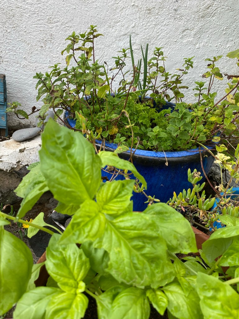 Det är så roligt för mig att lära mig om olika vildvuxna växter och örter här på ön. Igår var jag på vandring med en tysk vän, Sonja, som har bott här i över trettio år och hon visade mig några ställen där jag kunde plocka både rucola och en söt sort av vildlök. Det har regnar så väldigt lite här så bladen vi fann var små men hade en underbar smak.