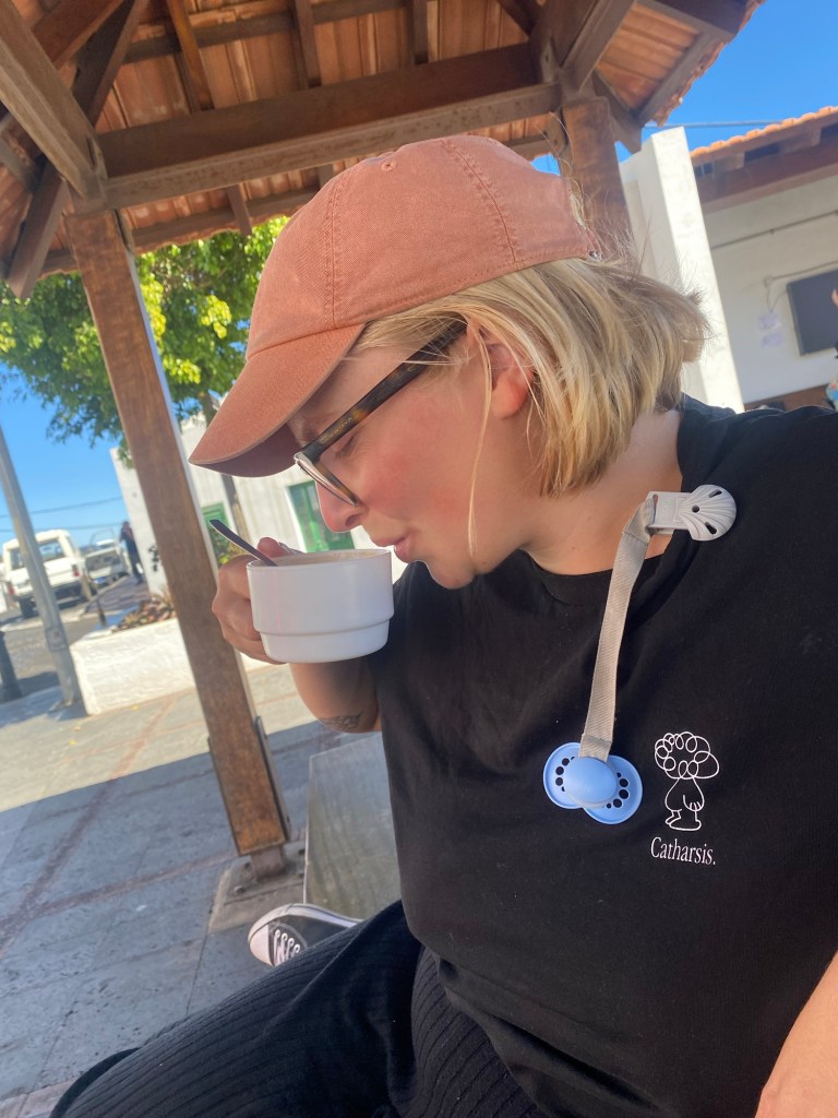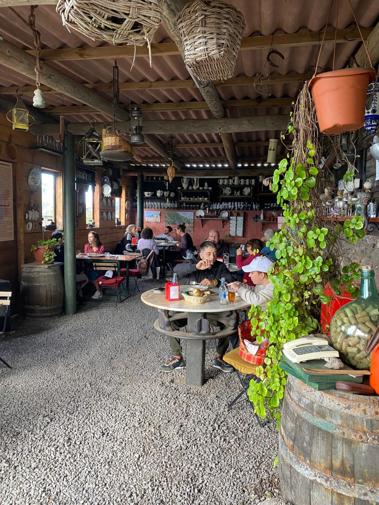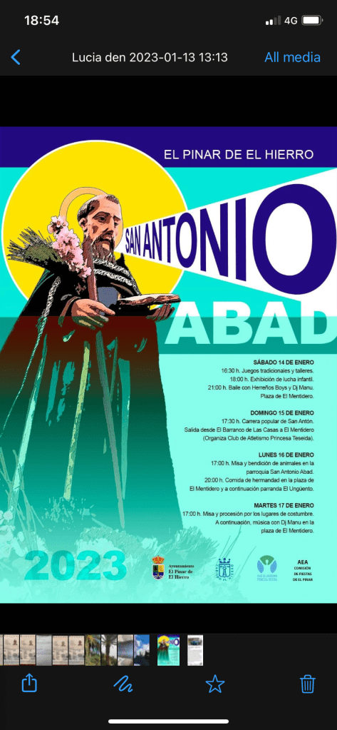 Vi tog bilen för att åka ner till La Restinga och äta och se om vår vän Calle var där, vi har bara skymtat honom en gång under den här vistelsen. Vi bestämde oss för att äta lunch på El Refugio – det blev grillade stora räkor och en peto (en speciell ljus tonfisk som finns här) och papas arugadas. När vi skulle betala så viftade ägaren bort kortet och sa att tyvärr, stormen hade slagit ut kontakten med banken. Det var kontanter som gällde. Och det hade vi inga. Jag sa att jag skulle gå ner till automaten och hämta ut lite cash och sa lite skämtsamt att jag lämnar Tomas i pant tills jag kommer tillbaka. Automaten fungerade inte heller. Den enda i hela La Restinga. Lite svettig gick jag tillbaka och viskade till Tomas att jag inte kunde få ut några pengar. Ägaren kom och jag stammade fram att även automaten var kaputt.