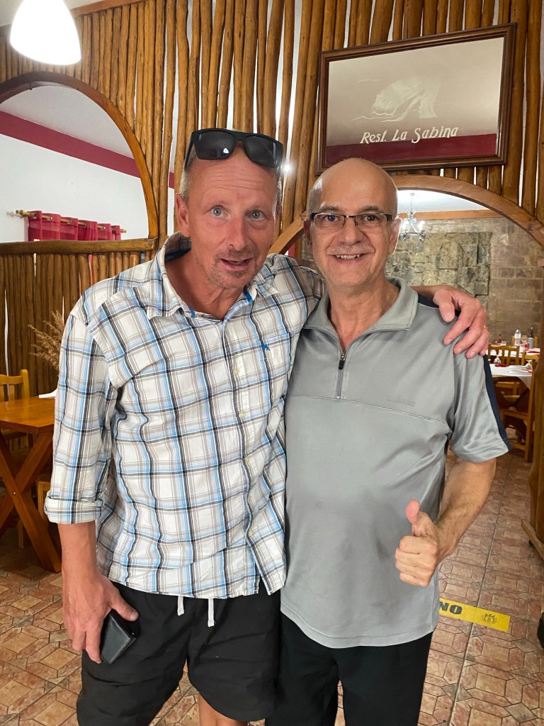 En dag när vi körde vår bil på vägen nere på Frontera så ser mitt tränade vinöga att det faktiskt ligger en flaska av favoritvinet i en disk. En disk som har Hierro-ostar i olika smaker och deras egna quesadillas. En liten affär. Vi tvärnitar och slänger oss in. Ägaren ser finurlig ut och säger att han har några stycken kvar. Under disken.